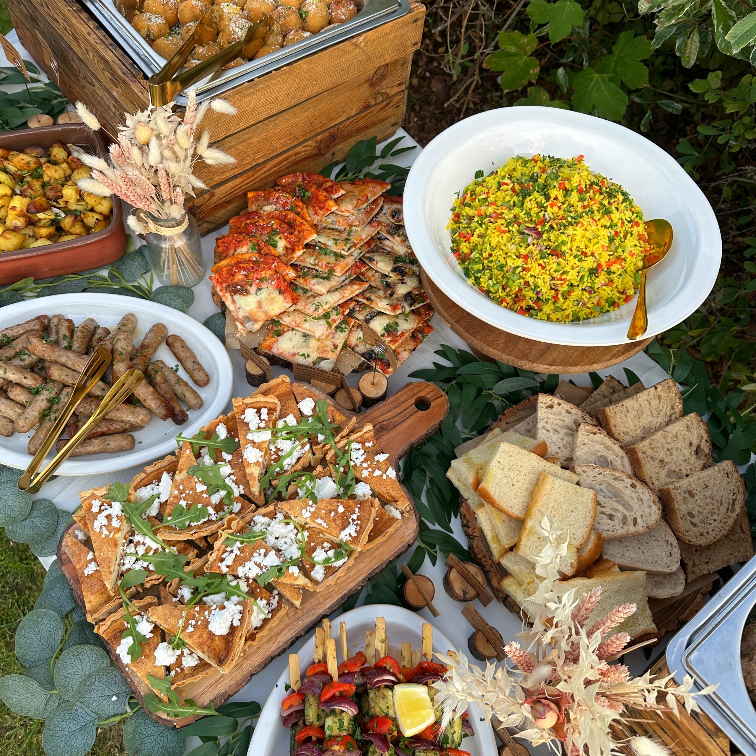 Hot Food Serviced Buffets: Include on-site cooking and service by our team. Hot dishes are served hot, and cold dishes are served cold, all food is served on table crockery